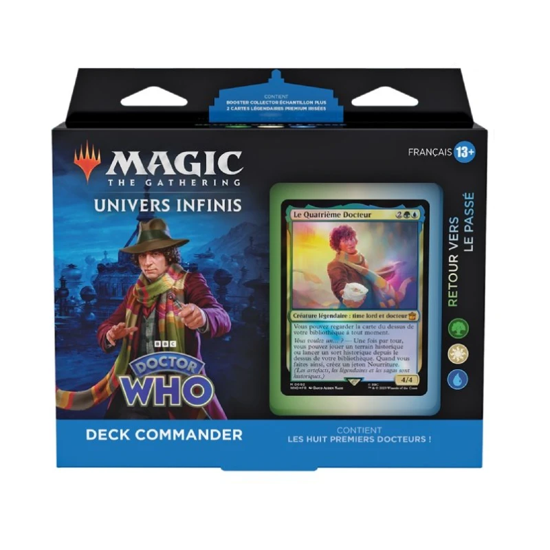 À bord du TARDIS, voyagez dans l’immensité de l’espace et du temps avec le Docteur et ses compagnons. Protégez l’univers contre les menaces qui le guettent ou partez à sa conquête en ralliant les ennemis du Docteur ! Célébrez les 60 ans de la série avec 4 decks Commanders dans l’univers de Doctor Who contenant des cartes à l’effigie de toutes les incarnations du Docteur, de ses compagnons et de ses ennemis emblématiques !