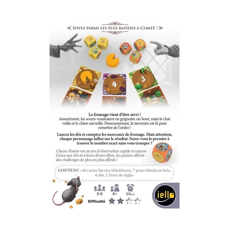 Dans ce jeu d’observation et de rapiditĂ©, les joueurs vont devoir dĂ©duire le nombre de fromages restants aprĂšs chaque lancer de dĂ©s.